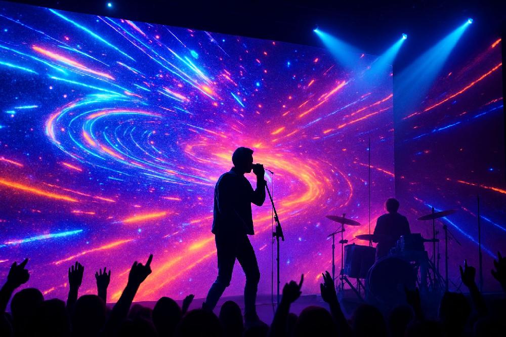 地域で開催されるフェスティバルにおける演出に映像画面や照明、